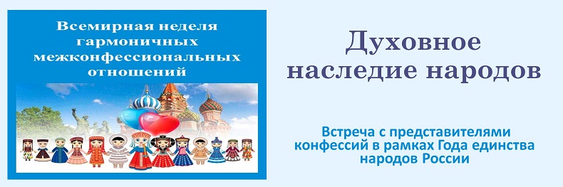 «Духовное наследие народов»: встреча с представителями разных конфессий города в рамках Года единства народов России и Всемирной недели гармоничных межконфессиональных отношений