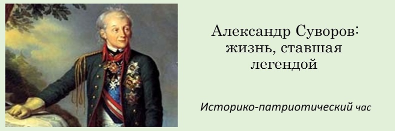 «Александр Суворов: жизнь, ставшая легендой»: историко-патриотический час к 295-летию со дня рождения полководца и в рамках Года защитника Отечества